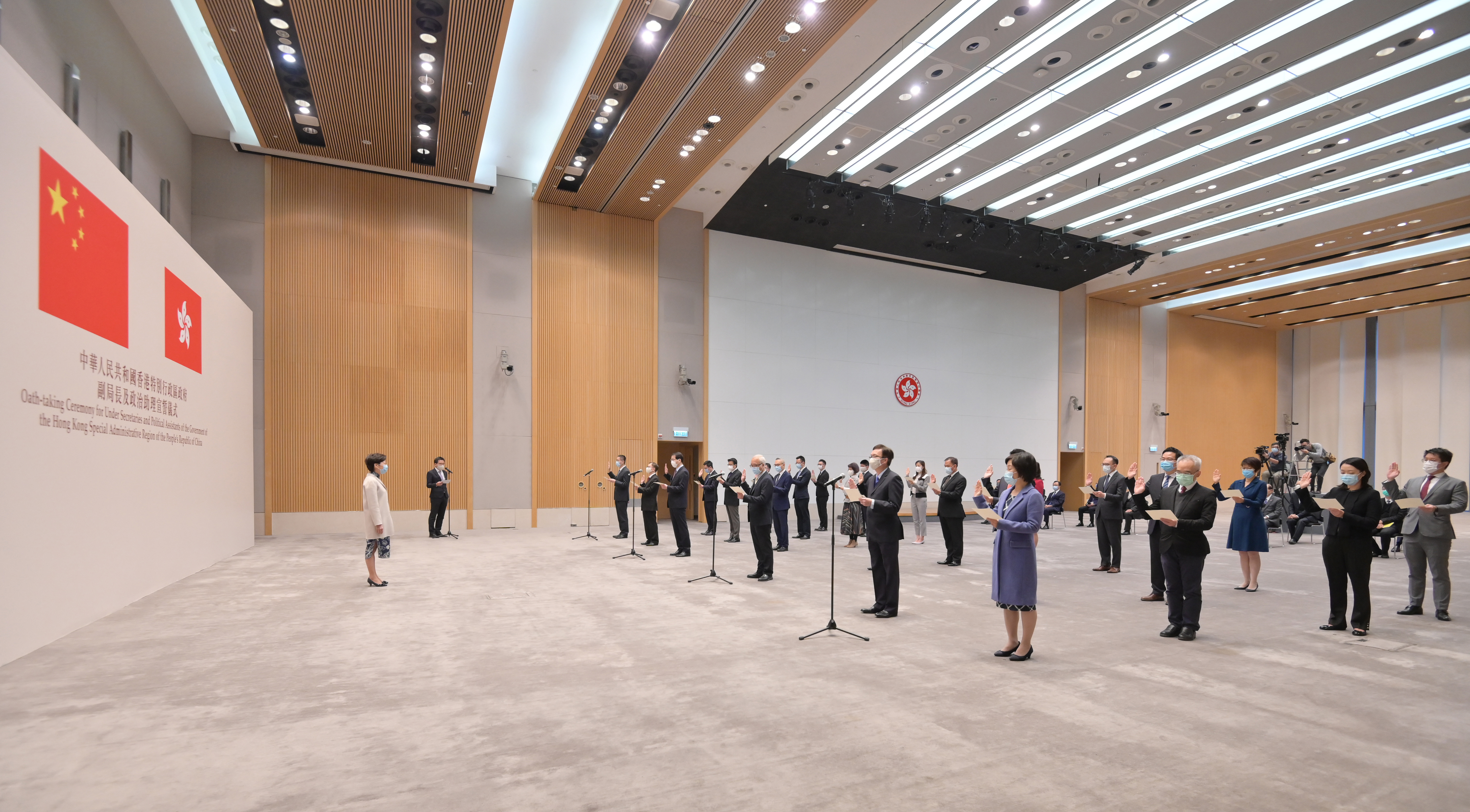 全體副局長、政治助理以及各常任秘書長、部門首長和屬首長級薪級表第六點或以上的公務員宣誓儀式於上周分別順利舉行。張建宗表示,兩場宣誓儀式看似簡單,只有短短的誓言,簽署聲明亦只是一紙文書,但實則具有重大而深遠的意義,並有標誌性的作用。引入宣誓或聲明安排,能真切地體現公務員背負的期望和責任,有助進一步維護和推廣公務員隊伍應恪守的核心價值,並確保香港特區政府能有效管治。