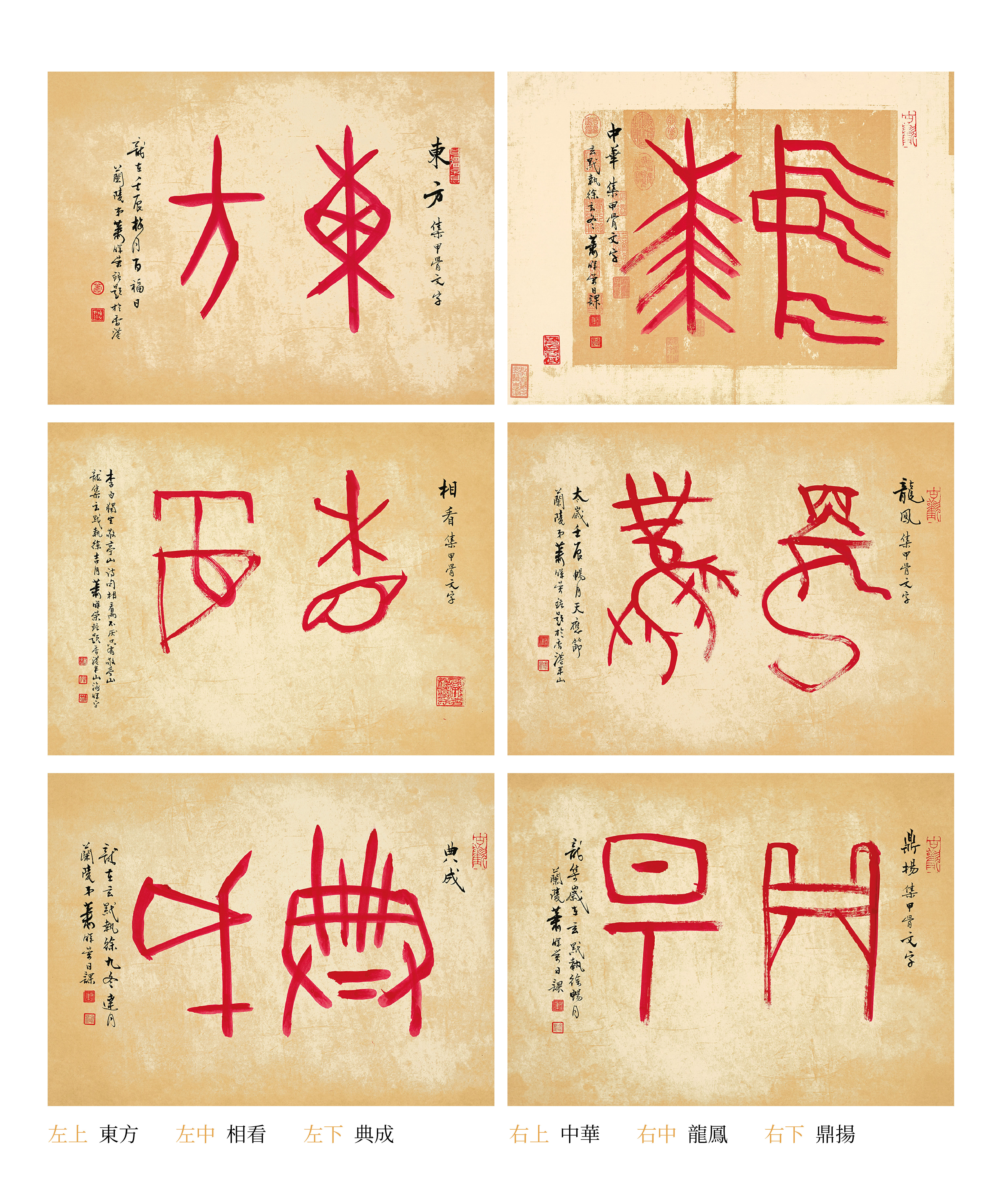 蕭暉榮6幅甲骨文系列作品,2017年,每幅34×46cm。