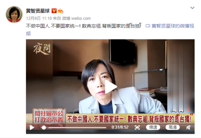 黃智賢,近年來最受大陸同胞尊敬佩服的台灣政治評論員之一,她支持兩岸和平統一、支持「一國兩制」的立場無比堅定。
