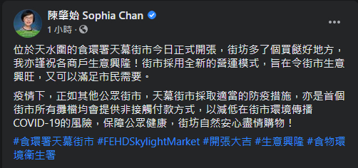 食物及衛生局局長陳肇始 Sophia Chan 臉書(Facebook)專頁。