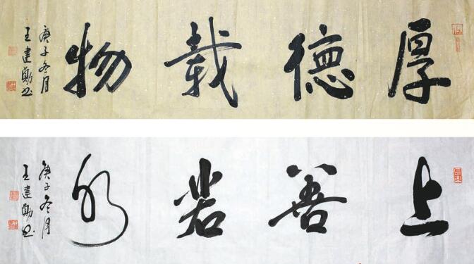 王建勳老師認為,藝術本身就是引導人們自覺地感悟宇宙與人生真諦的過程,因此以書法藝術為載體參悟,需要從三個方面喚醒引導自身道德境界的指歸:一是要遵循書法本身線條藝術的規律,不可以輕易求變求異,要讓大眾通過作品明了真義;二是遵循作品內容本身,所書一定是富含哲理性和正能量的內容,讓人們視之爽目,思之有悟,悟之釋懷;三是注意與作品所屬人的交流,通過交流碰撞產生思想的火花,把每次的創作都當成一次感悟宇宙與人生真諦的旅程。因此王建勳老師的書法拙撲天真,中正守和,穩重端莊,透露出生命與心靈最深處的和諧。