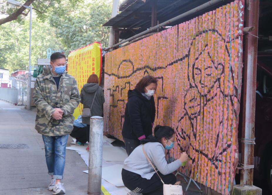 聖誕節假期前的12月20日,深井天主教小學的畢業舊生共10人,分時段地以兩人一組,在鋅鐵板牆上繪畫。另外還有街坊帶同子女參與。深井天主教小學視藝老師張煥儀說,這批舊生從前都是校內美術培訓班學員,參加過比賽,有些拿過獎,在掌握畫技方面較好,現時他們都是中學生,個子夠高,適合畫巨大的壁畫。