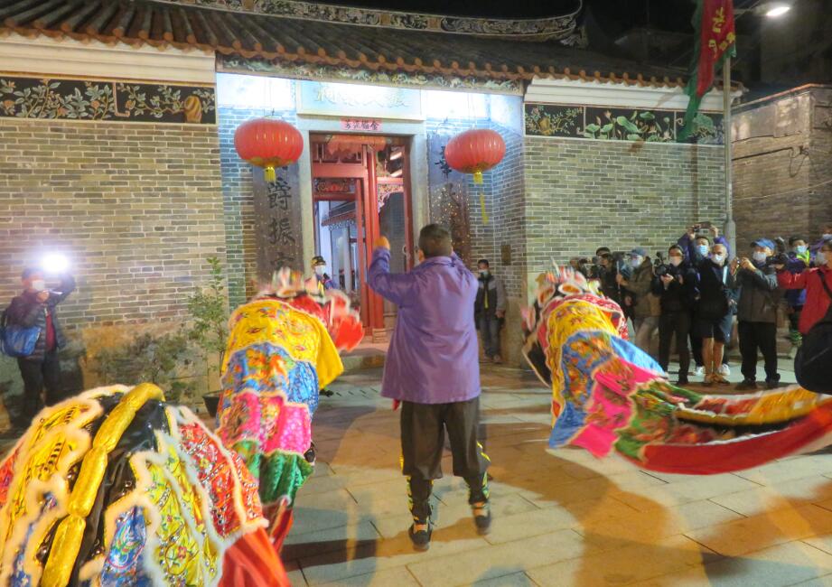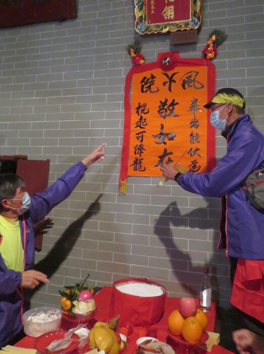 到10時,麒麟採青及參拜完畢,眾村民分享早早預備的雞粥,在涼冷的夜晚帶來一絲絲溫暖。翌日早上,麒麟隊到村中十多處地方參拜,包括書室、石壇、井頭、土地公等。之後準備迎接明年1月13日至17日的太平清醮。(記者 鄭玉君)