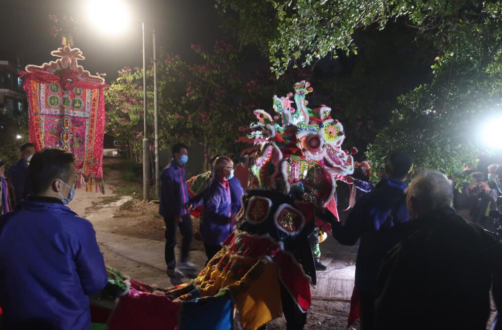 晚上9時半,麒麟往僻靜地即村邊榕樹旁開光採青。