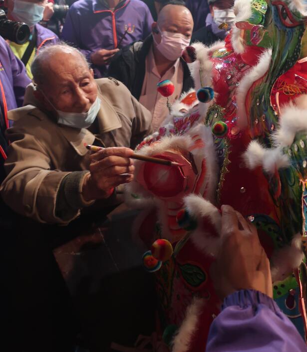 97歲父老張日祥是其中一名點睛者,麒麟點睛後,眼放光明。周樹佳提供圖片
