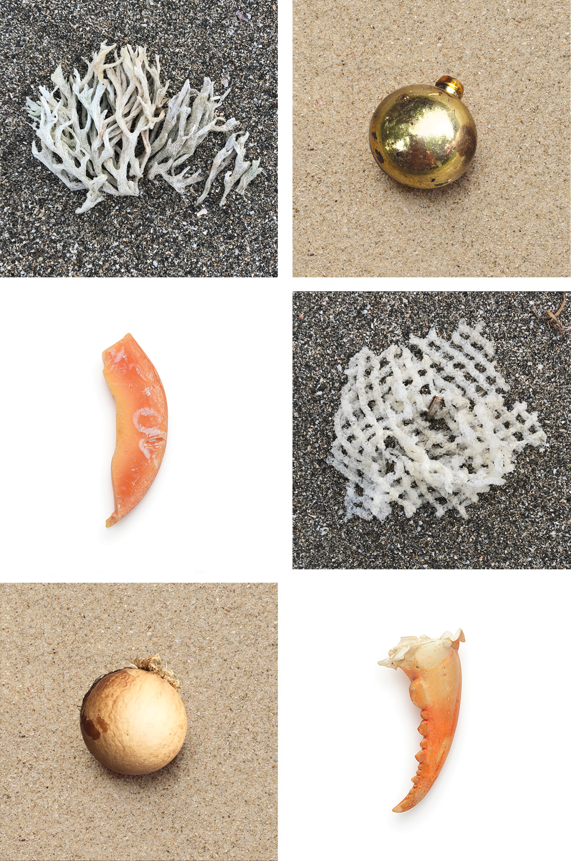 德國籍藝術家和環保推動者liina klauss,自2013年起在本港的海灘上逐件拾起是次展覽的展品,每件海洋污染物跟另一件天然形成的物品外貌非常相似,一件由大自然中誕生,另一件則因人類遺棄而出現,如瓶蓋和貝殼、生果網和珊瑚等,組成形似而並非一對的展品並排展示,造成表面有趣但實質可悲的畫面。博物館現正推出線上預覽,透過短片欣賞liina klauss在海灘上拾起的造型及顏色十分相似的物品。這些充滿視覺效果的藝術品,相比以數據了解海洋污染,更加直觀,也更引人深思。 (撰文:Janice 圖:海事博物館提供)