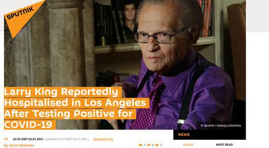 據俄羅斯衛星通訊社1月2日報道,美國偶像級電視訪談節目主持人拉里•金在新冠病毒檢測呈陽性後已在洛杉磯住院。
