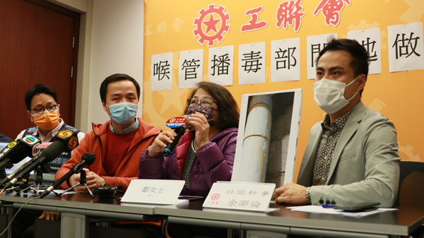 工聯會指,第四波新冠肺炎疫情蔓延至多個公共屋邨,而房委會雖然在6月曾答應它們會全面檢查全港屋邨喉管,但工聯會認為18個月的時間表太長,因此工聯會立法會議員郭偉強、九龍東總幹事鄧家彪、香港喉管從業員總會主席趙建強、社區幹事余邵倫以及公屋居民鄺小姐於今日(3日)向房署提出建議。