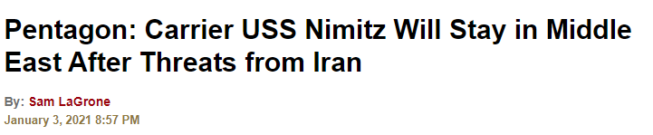 美國代理國防部長克里斯·米勒在聲明中說:「由於伊朗領導人最近對特朗普總統和其他美國政府官員發出威脅,我已下令尼米茲號(CVN-68)停止例行重新部署。」