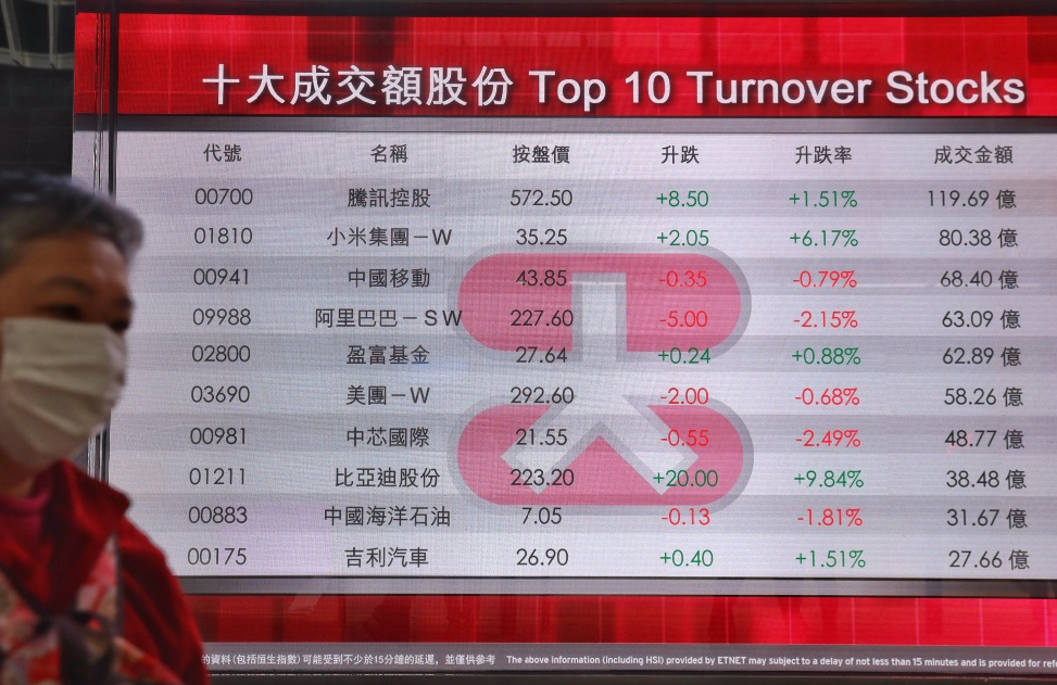 藍籌股當中7隻創歷史新高,包括友邦保險(1299)升3%,港交所(388)、安踏體育(2020)、創科實業(669)及舜宇光學(2382)升近4%。內需股繼續有炒作,比亞迪(1211)升近10%,收報223.2元創新高。小米集團(1810)新手機銷售理想,亦大升6%,是表現最佳藍籌。騰訊控股(700)升逾1%,不過,阿里巴巴(9988)再跌逾2%。市場擔心美國或會再要求三大中資石油股除牌,拖累三桶油齊跌。另外,花旗表示,紐交所決定啟動中國3大電訊商退市程序,符合市場預期,退市反而可讓公司股份獲得重估價值並減省財務監管披露成本。