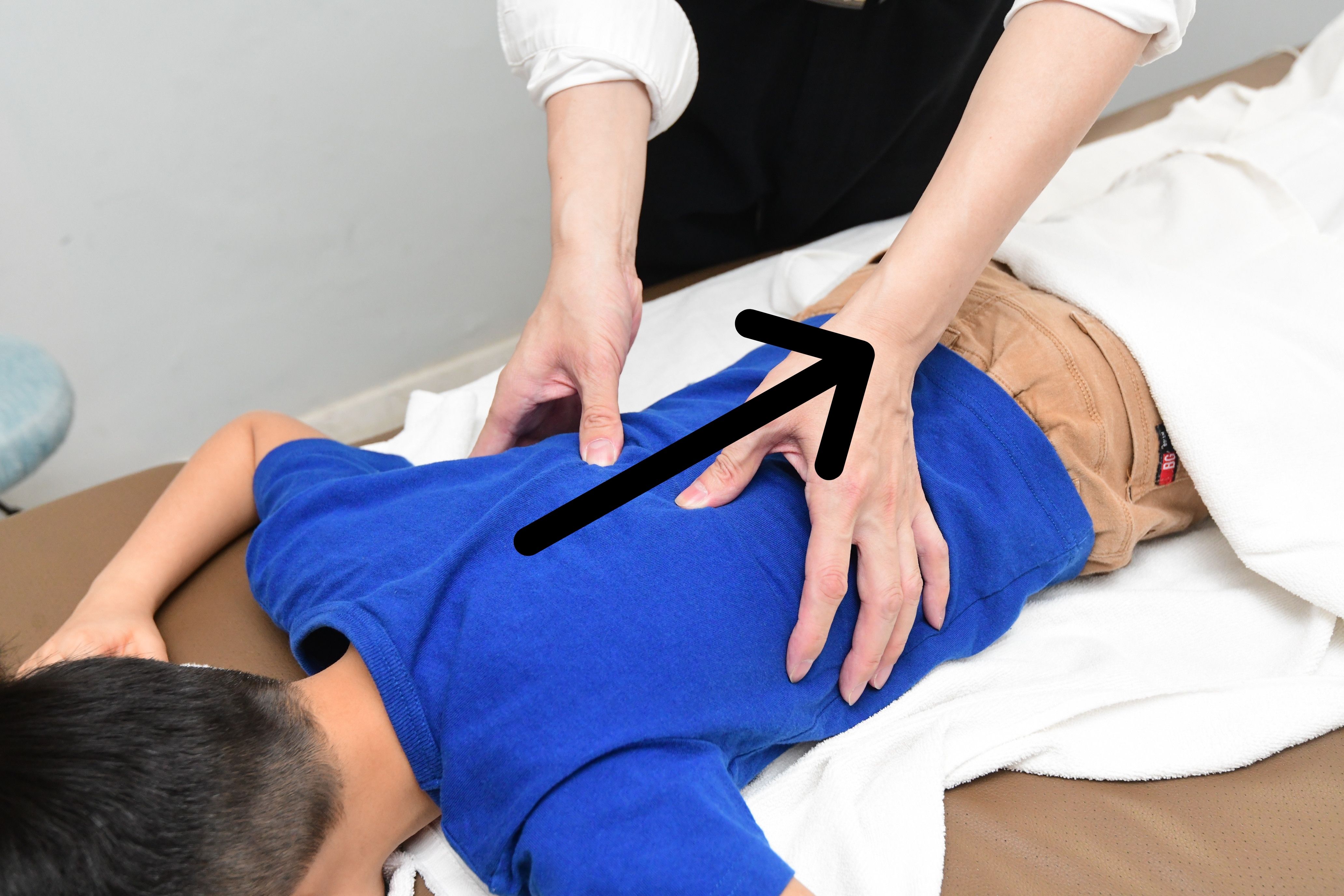 膀胱經:先由上到下、下至上輕揉背部,放鬆背部。背部脊柱兩側1.5吋和3吋(此吋等於小孩一格手指)是膀胱經,沿著背部脊柱旁開1.5吋用兩手拇指由上至下慢慢地按揉,每個位置只須停留1至2秒。然後背部脊柱旁開3吋重複一次。