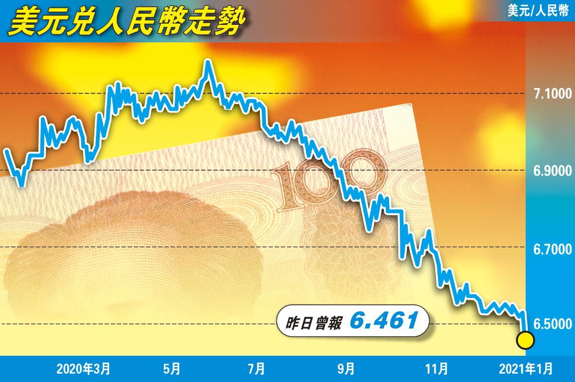 而透過早前簽署的區域全面經濟夥伴關係協定(RCEP),可預見中國作為區內龍頭,貿易可愈做愈大。在美元將展開下跌周期、美匯持續尋底,以及人民幣國際化的進程加快的情況下,人民幣兌美元今年相信可見6.25至6.30水平。而面對中美之間持續的博弈、全球低息大環境及資產泡沫漸趨嚴重的2021年,相信黃金等對抗通脹的產品亦會持續受追捧,黃金今年暫看2200至2250美元水平。