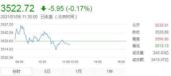 截止午間收盤,滬指跌0.17%,報3522.72點,深成指跌0.75%,報15034.62點,創業板指跌0.99%,報3067.46點。兩市成交額7717.6億元;北上資金實際淨流入7.08億元。兩市38股漲停,25股跌停(含ST)。