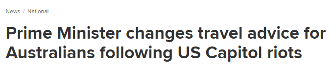 據多家澳媒7日消息,澳大利亞總理莫里森當日表示,美國華盛頓哥倫比亞特區的場景令人悲痛,建議澳大利亞人謹慎赴美旅行,避免出現在抗議活動高發地。
