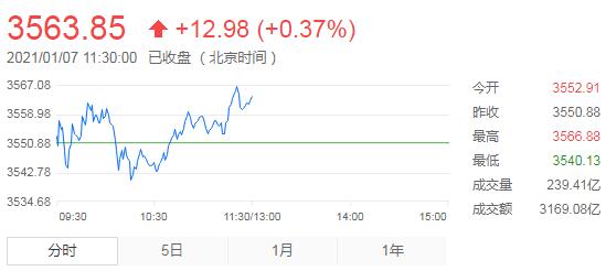 截至收盤,滬指漲0.37%,報3563.85點,深成指漲0.8%,報15308.4點,創業板指漲0.78%,報3139.37點,另外滬深300指數大漲1.01%。兩市成交額7060.1億元;北上資金實際淨流出12.04億元。兩市37股漲停,33股跌停(含ST)。