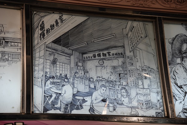 吳其翰請漫畫家把當年友愛邨冬菇亭粥麵店的面貌畫出來。
