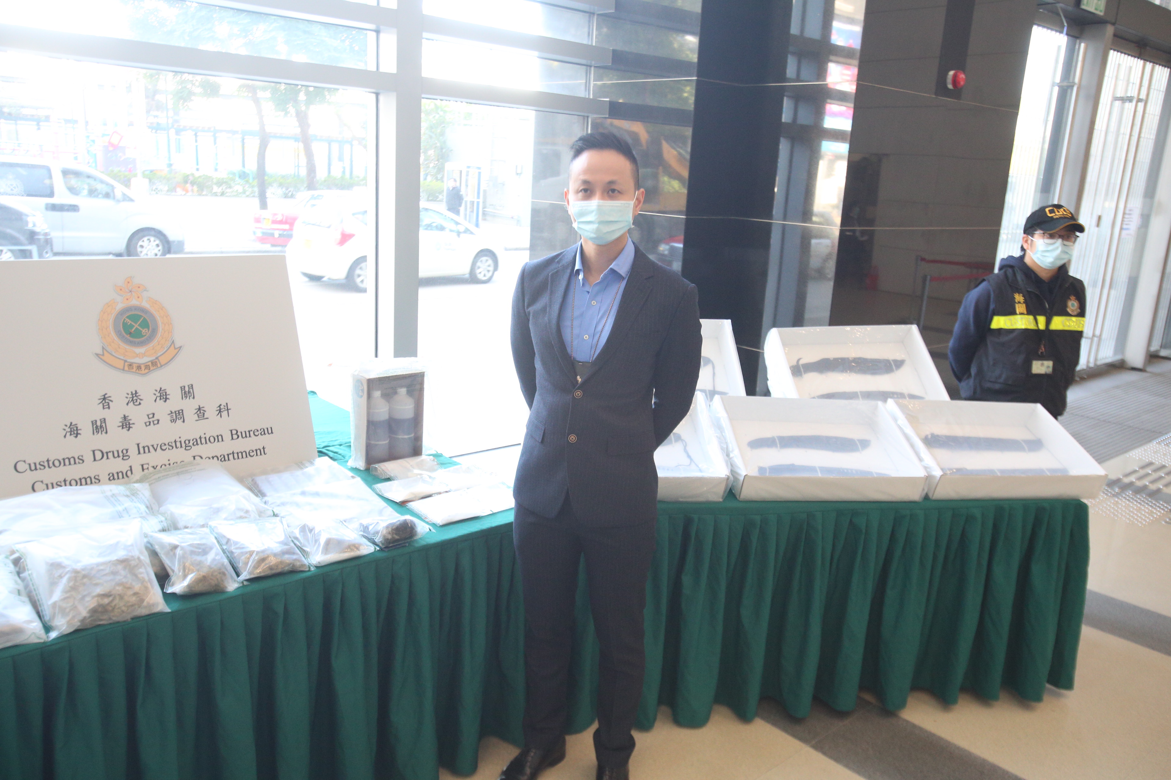 何明威指出,昨日2宗拘捕行動合共檢獲毒品總值約830萬元,2宗案件仍在調查中,正追查毒品來源和走向,不排除供應本港娛樂場所,2名疑犯仍被通宵扣查。何表示在聖誕節和新年過後,與農曆年臨近的長假期前後,毒販會有頻密的販毒活動,海關會繼續以情報主導打擊毒販。(記者 區天海)