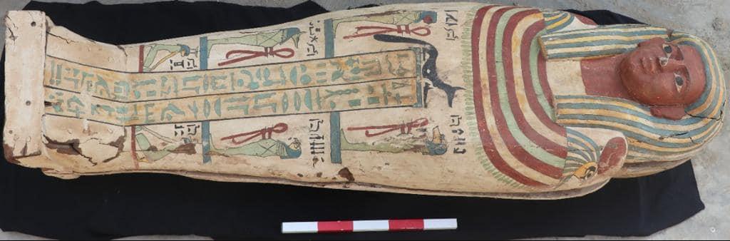 觀光暨古物部在聲明中表示,這批年代可追溯至古埃及新王國時期的木棺,是在地下約10到12公尺的52個埋葬井中發現。