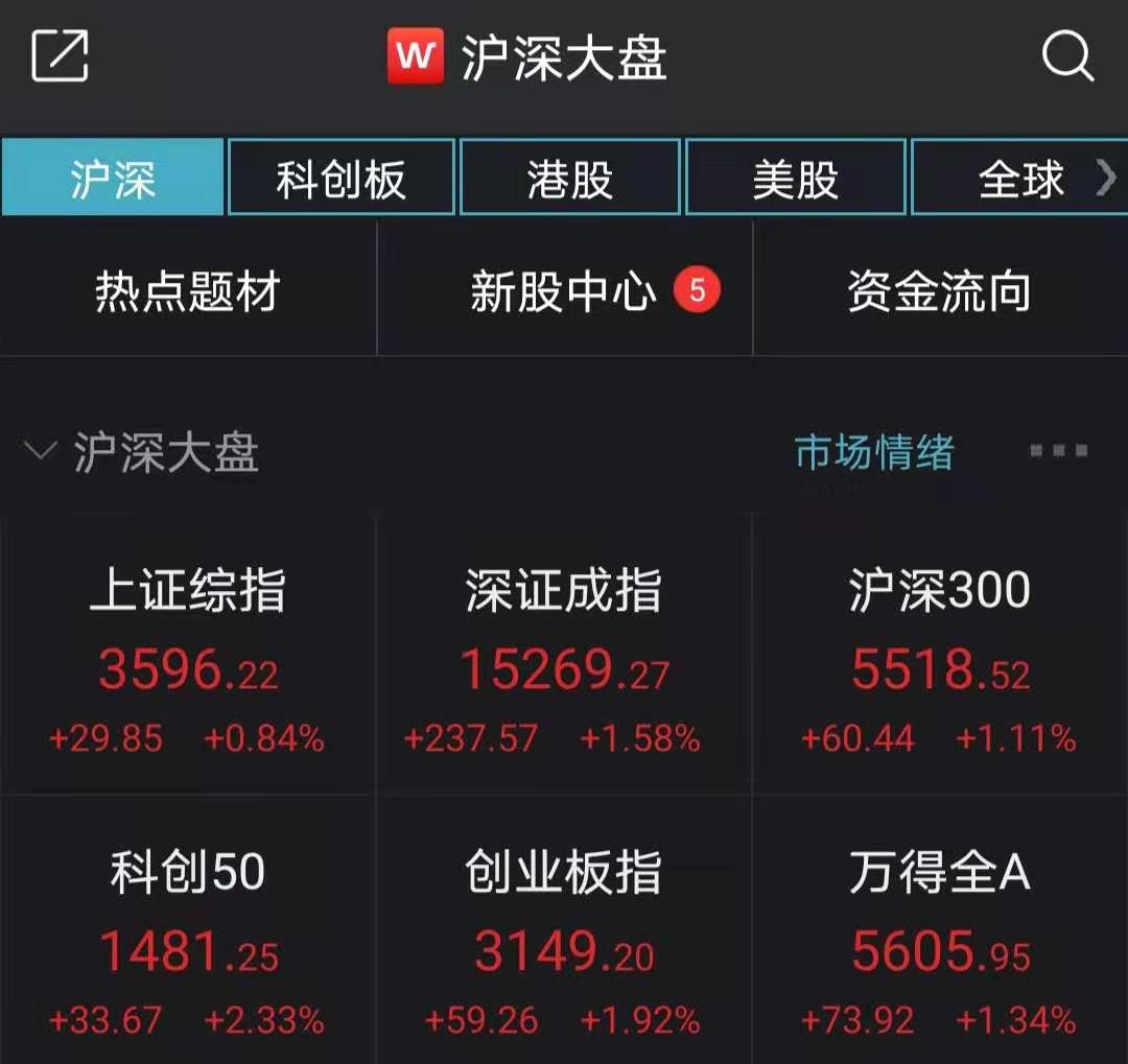 18日,A股三大指數低開後快速下挫,創指一度跌逾1%,而後三大指數震盪上行,創指表現較為強勢,漲逾1.5%,深成指漲逾1%,黃白線背離幅度收窄,個股漲多跌少,賺錢效應較好,板塊方面,半導體、智能駕駛板塊拉升,券商股走強。午後三大指數延續上行態勢,滬指一度漲逾1%,創業板一度漲逾2%,國產晶片板塊活躍,券商股拉升,而後指數高位盤整,總體市場顯著回暖,題材全線活躍,個股延續普漲,板塊方面,半導體概念板塊走強,物業管理板塊走高。截至收盤,滬指漲0.84%,創業板指漲近2%。半導體、鋰電池爆發,稀土永磁全力釋放,石化、海運表現不俗。兩市成交額逼近萬億。
