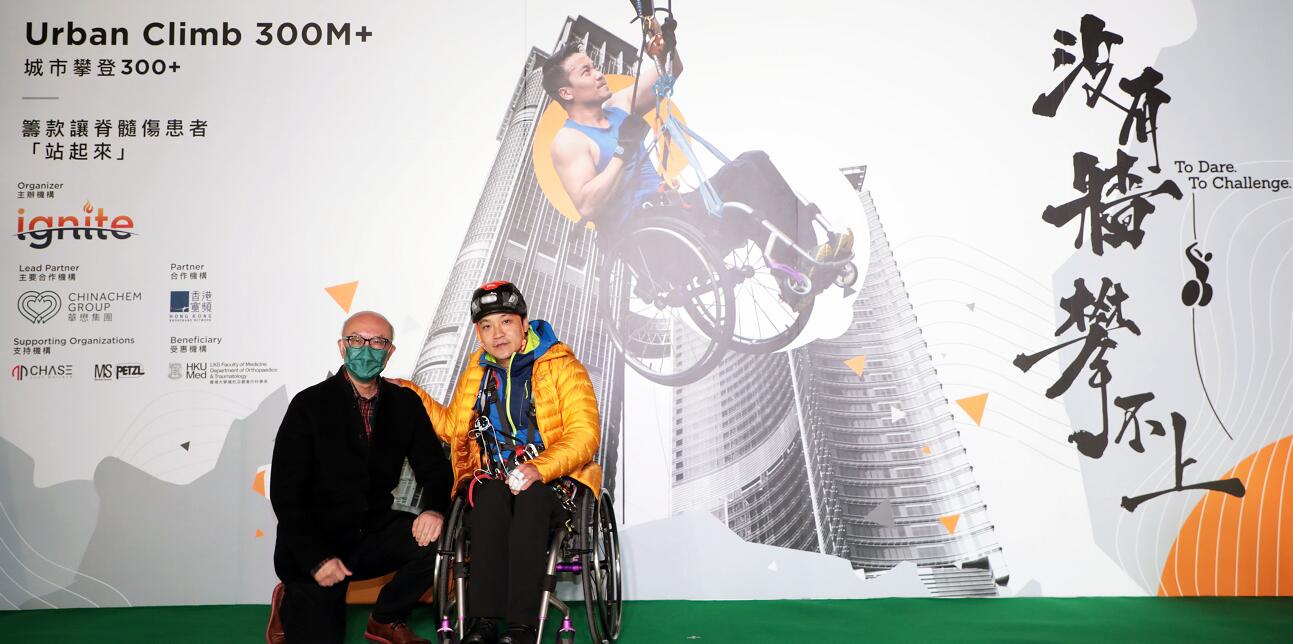 下肢癱瘓的攀石運動員黎志偉上星期六在華懋集團總部、新界最高的建築物如心廣場進行城市攀登300+ 挑戰,最終完成超過250米的高度,成為首位攀爬摩天大廈的輪椅運動員。雖然受風勢所阻而未能按原定計劃登頂,但他藉這次壯舉勉勵香港人折而不撓,只要堅持信念,迎難而上,定能跨越困境。