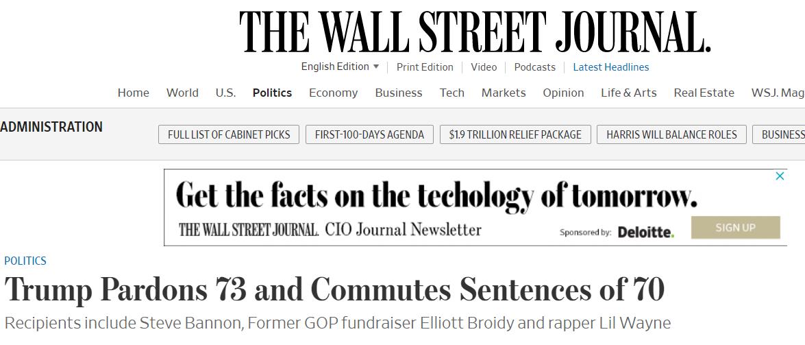 据报道,在白宫当天的名单中,被赦免的有73人,被减刑的有70人。但特朗普没有赦免自己及其成年子女,外界此前猜测,特朗普会在最後时刻赦免自己和家人。
