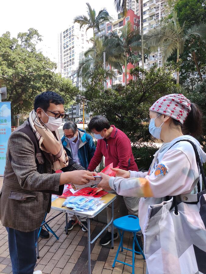 1月23日上午,港島區建制派議員聯同社區主任、義工團隊分別在港島56個小區擺放街站,舉行迎新春送祝福活動,並向市民宣揚同心抗疫的信息。