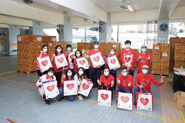 為配合今年「抗疫」的主題,香港賽馬會贊助的愛心禮物包內除了包括白米、梳打餅、快熟燕麥片、平安膏、年曆、放大鏡指甲鉗等食物及日常用品外,屈臣氏集團亦贊助口罩及搓手液等防疫用品。7位香港現役及退役精英運動員,包括李麗珊及黃德森夫婦、馬文心、傅家俊、張小倫、石偉雄、呂麗瑤以及保良局雨川小學的家長及學生更親筆撰寫了鼓勵和慰問的心意卡。(記者周偉立)