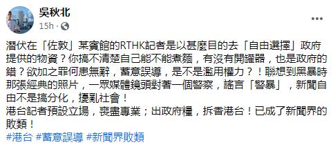 吳秋北最後強調「新聞自由不是搞分化,擾亂社會」。