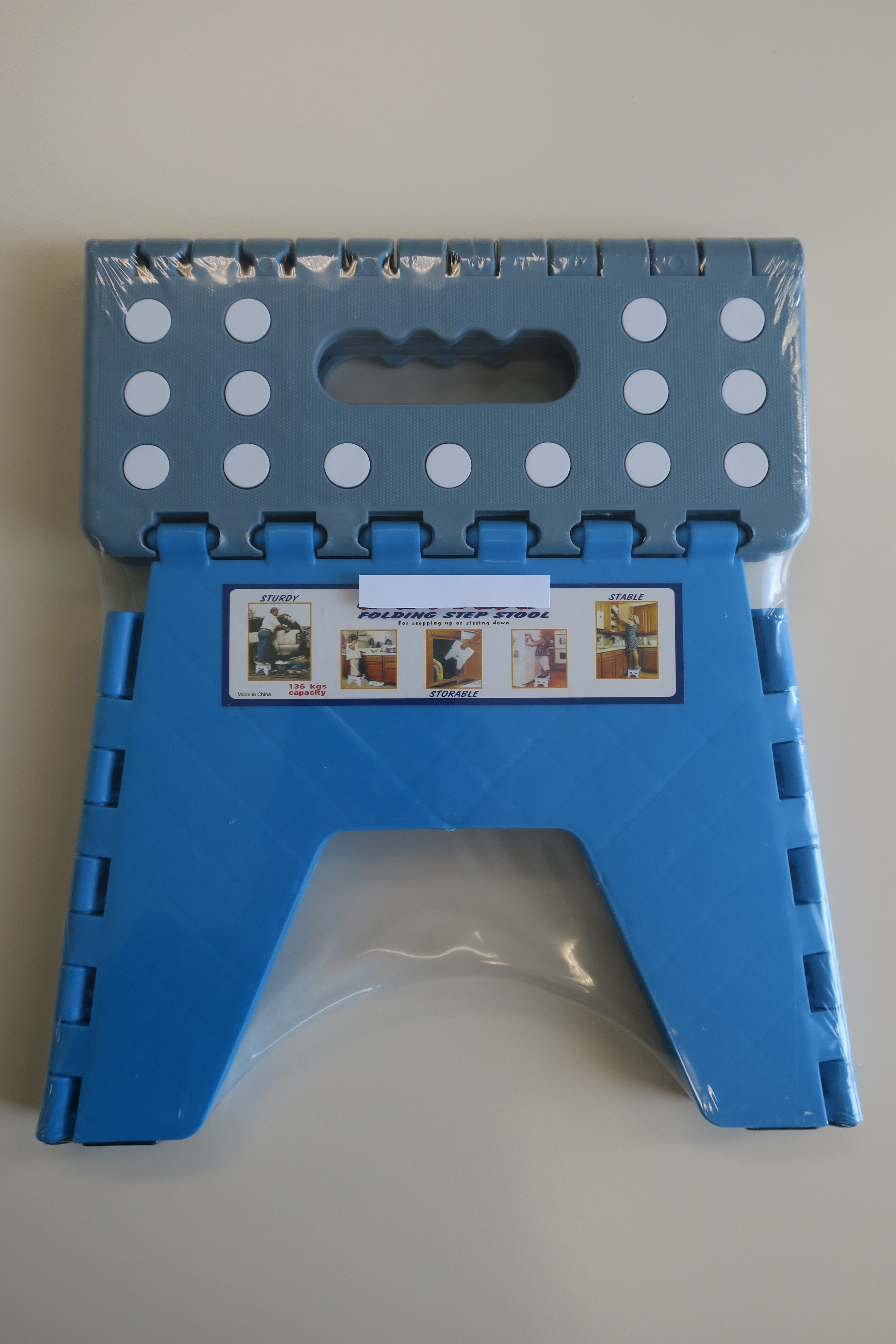海關25日提醒市民留意一款不安全摺疊膠凳,或會令使用者從膠凳墮下。圖為該款摺疊膠凳。