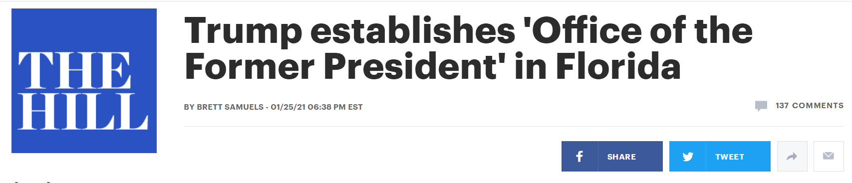 《國會山報》:特朗普在佛羅里達設立「前總統辦公室」