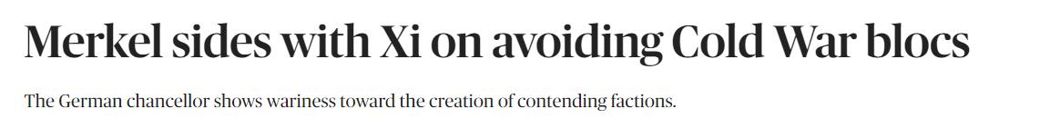 報道稱,當美國總統拜登尋求拉攏西方民主國家「抱團」以應對中國時,默克爾對於這種「拉幫結派」表現的十分警惕。