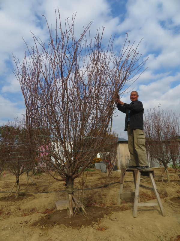 香伯花五至六年時間栽種的桃花王 ,要用梯子才能打理。