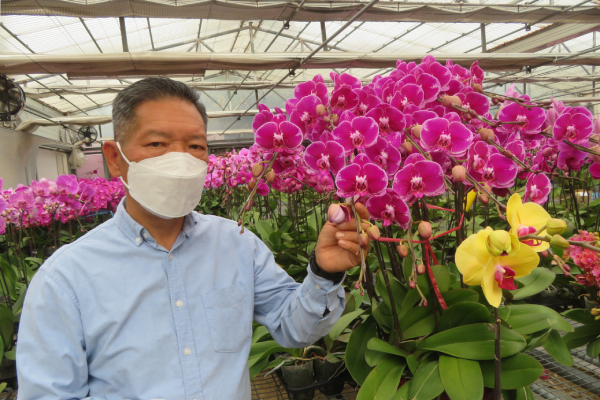 至於年花銷售市道,他預計不會太差,因港人仍不能旅遊,過年家中置放鮮花,可開心轉運。蘭花是高貴大方的花種,易打理、花期又長,今年價格亦無甚起落。若在花場購買,一株普通品種的蘭花,售價在100至120元之間,特別品種200多元起。蘭花品種則有很多,年長人士喜愛紅色,年輕的愛雜色如黃、白、斑點等。他呼籲市民支持本地農業,到花場買鮮花。