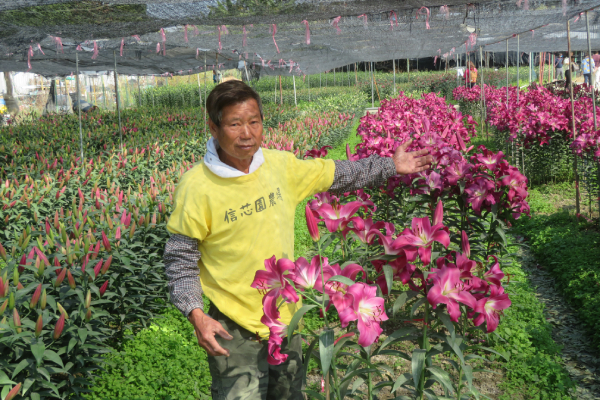 梁日信為開放花場,提早栽種一些百合,方便入園參觀市民打卡。