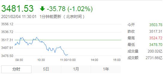 2月4日,星期四,農曆十二月廿三(小年)。今日早盤A股三大指數全線低開。之後,在短暫衝高后,開始震蕩下行。分時圖上,滬指走出雙頭下跌形態。截至午盤前,三大指數跌幅均超1%,其中創業板跌幅超過1.2%。盤面上,白酒概念、銀行、醫美概念等板塊漲幅居前,遊戲、稀缺資源、養殖等板塊跌幅居前。注冊制次新股連續第三天大跌;白酒概念強勢領漲,貴州茅台漲超5%,股价达2309元,市值超28000億創歷史新高。