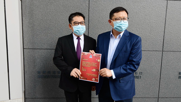 近兩年,香港經歷修例風波及新冠肺炎疫情,在這艱難時刻,香港警察始終維護法治、止暴制亂,保護全港巿民的生命財產。為感謝警方對香港的無私奉獻,香港再出發大聯盟秘書長譚耀宗,副秘書長譚惠珠、黃英豪、張志剛、蘇長榮今早(5日)到灣仔警察總部,向警隊致以崇高敬意和新春祝福,並送上口罩、潔手液、朱古力、清涼茶等物資表達關心,由警察高級福利主任沈頌雅代表接收。