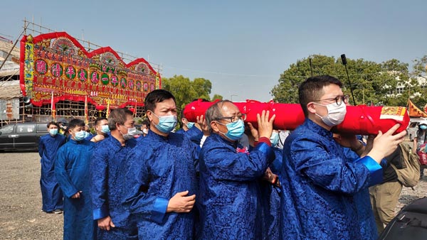 緣首們行香返回醮場不久,即舉起金榜參與啟金榜儀式。