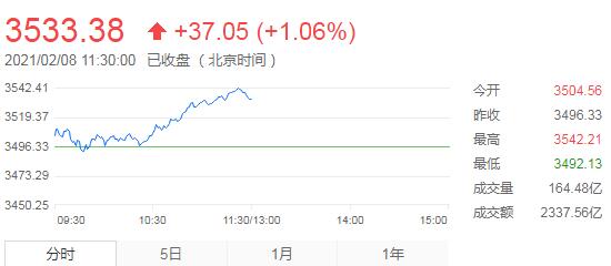 截至午間收盤,滬指漲1.06%,報3533.38點,深成指漲1.67%,報15258.3點,創業板指漲2.16%,報3262.83點。兩市成交額5252.8億元;北上資金實際淨流入80.64億元。兩市51股漲停,18股跌停(含ST)。