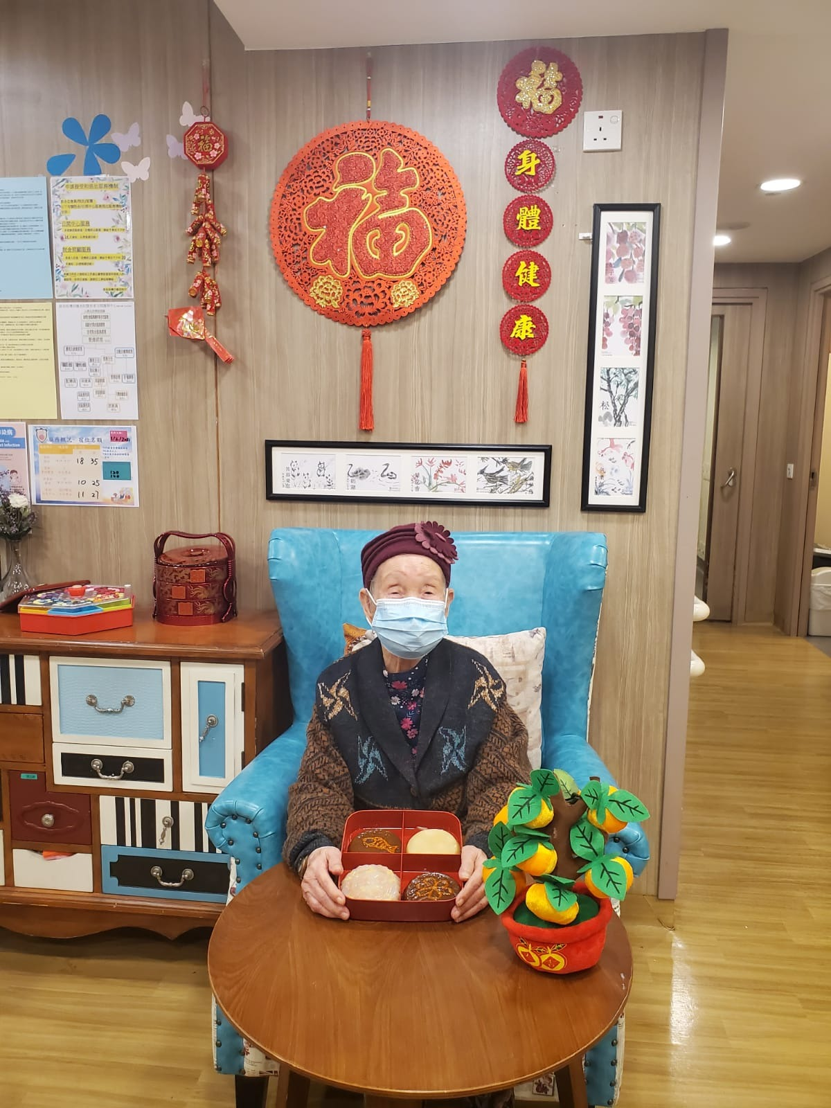 保良局透露,黎婆婆因為新冠肺炎疫情未能與家屬在院舍見面;保良局安老服務團隊除了安排長者家屬視像探訪,亦增加他們的電話聯絡,讓長者及家屬互動祝福,表達心意;團隊還在院舍安排特別節目,令院友享受節日歡樂氣氛。