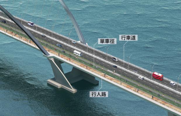 首條同時具備行車道路、單車徑及行人路功能的海上高架橋。