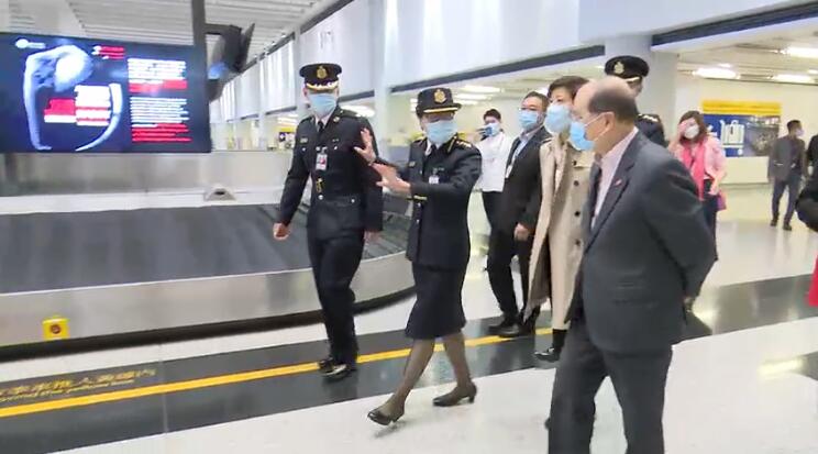 張建宗亦在香港警務處副處長(行動)蕭澤頤、香港海關副關長何珮珊及入境事務處副處長陳天賜陪同下,探訪在機場當值的香港警務處、香港海關和入境事務處的前線人員。