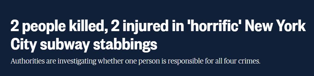 大約在同一時間,在華盛頓堡的地鐵站中發現一名43歲的男子被刺傷。曼哈頓北部警局負責人布萊恩·麥吉(Brian McGee)說,這名男子說他遭到一名不知名的男子襲擊。