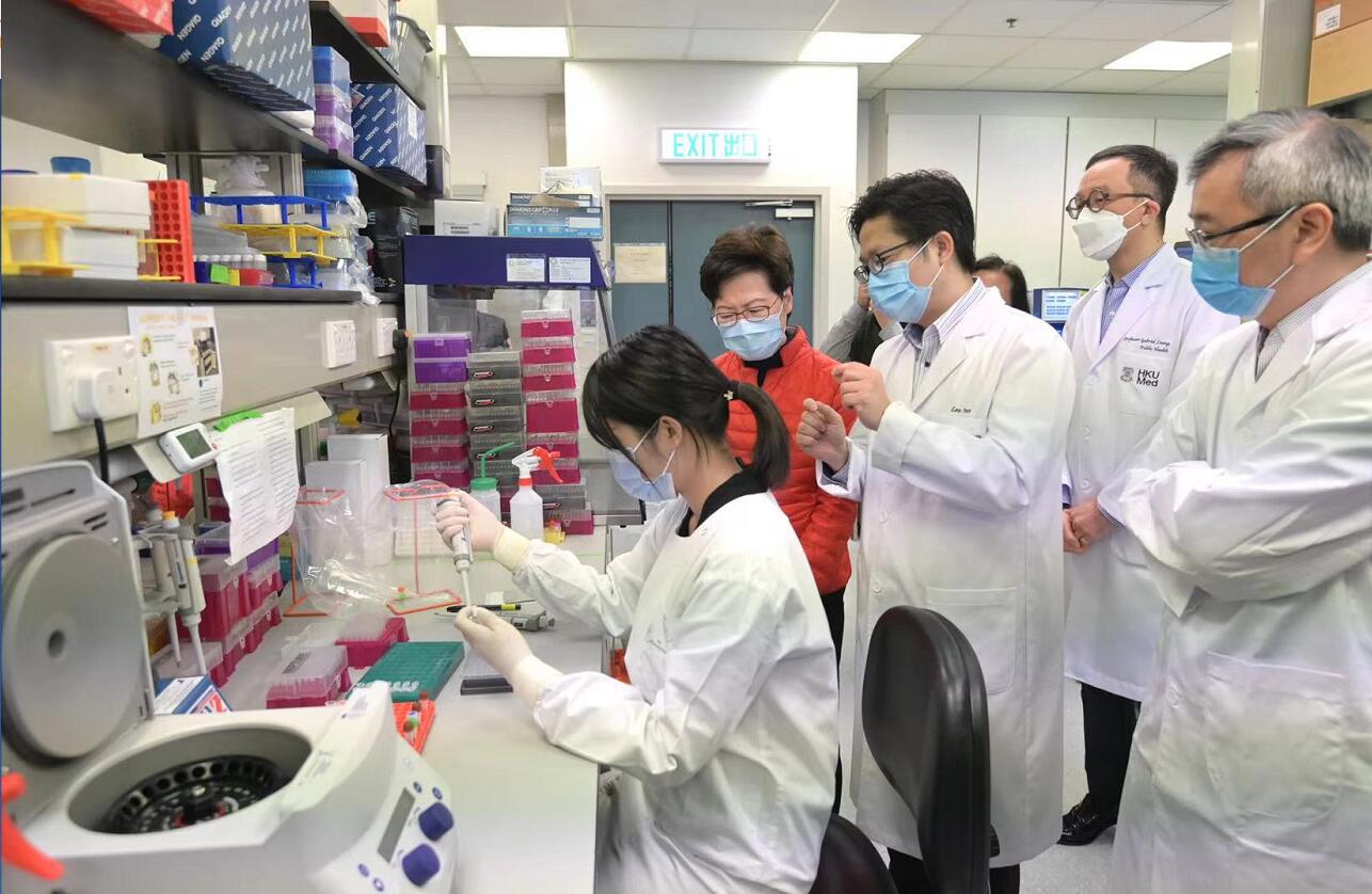 林鄭月娥一行今早先到渠務署在中西區的污水井採樣點,視察工作人員採樣的流程。她感謝渠務署同事和合約承辦商默默支援抗疫,每天要在極短時間通知下到選定的污水井進行連續數小時的戶外採樣,以配合研究團隊的工作。他們接着前往香港大學的公共衞生實驗室,由香港大學李嘉誠醫學院院長梁卓偉教授及土木工程系環境微生物組工程與生物技術實驗室張彤教授介紹污水樣本的處理及檢測過程。林鄭月娥並與多位參與研究的研究員和博士生傾談,知道她們在農曆新年仍努力不懈地工作。她表示特區政府近年大力推動香港的創科發展,而大學的研究能力和水平是創新和科技的重要基礎。
