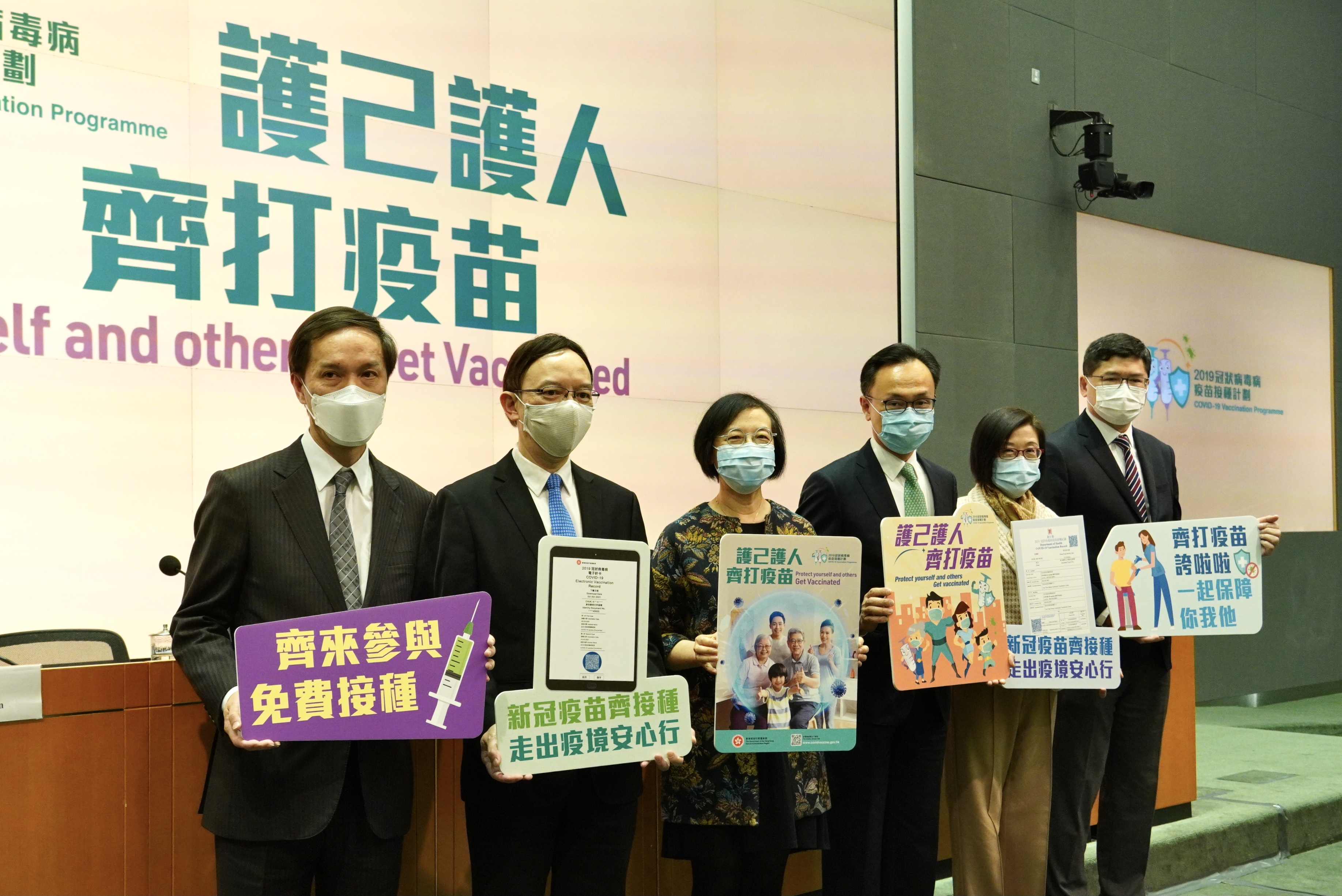 衞生署將聯同港大學者合作主動監察, 並已要求疫苗研發商心竹提供藥物更新資料,以檢討疫苗的效益;政府已成立委員會,一旦收到異常事件,委員會會進行評估,市民接種後可用「醫健通」儲存接種紀錄。