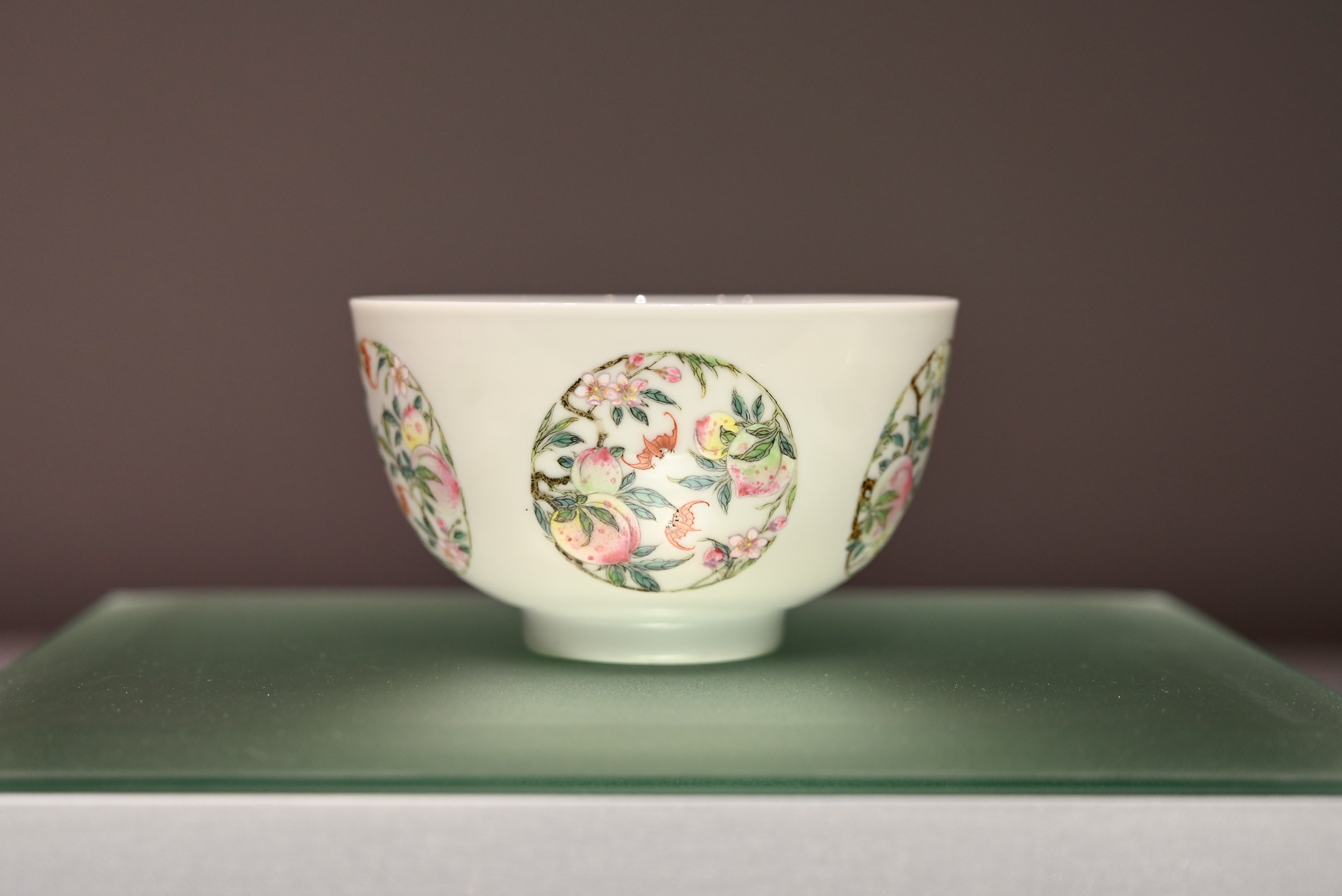 圖為清代雍正年製的粉彩褔壽雙全團花紋碗。(達文堂藏品)