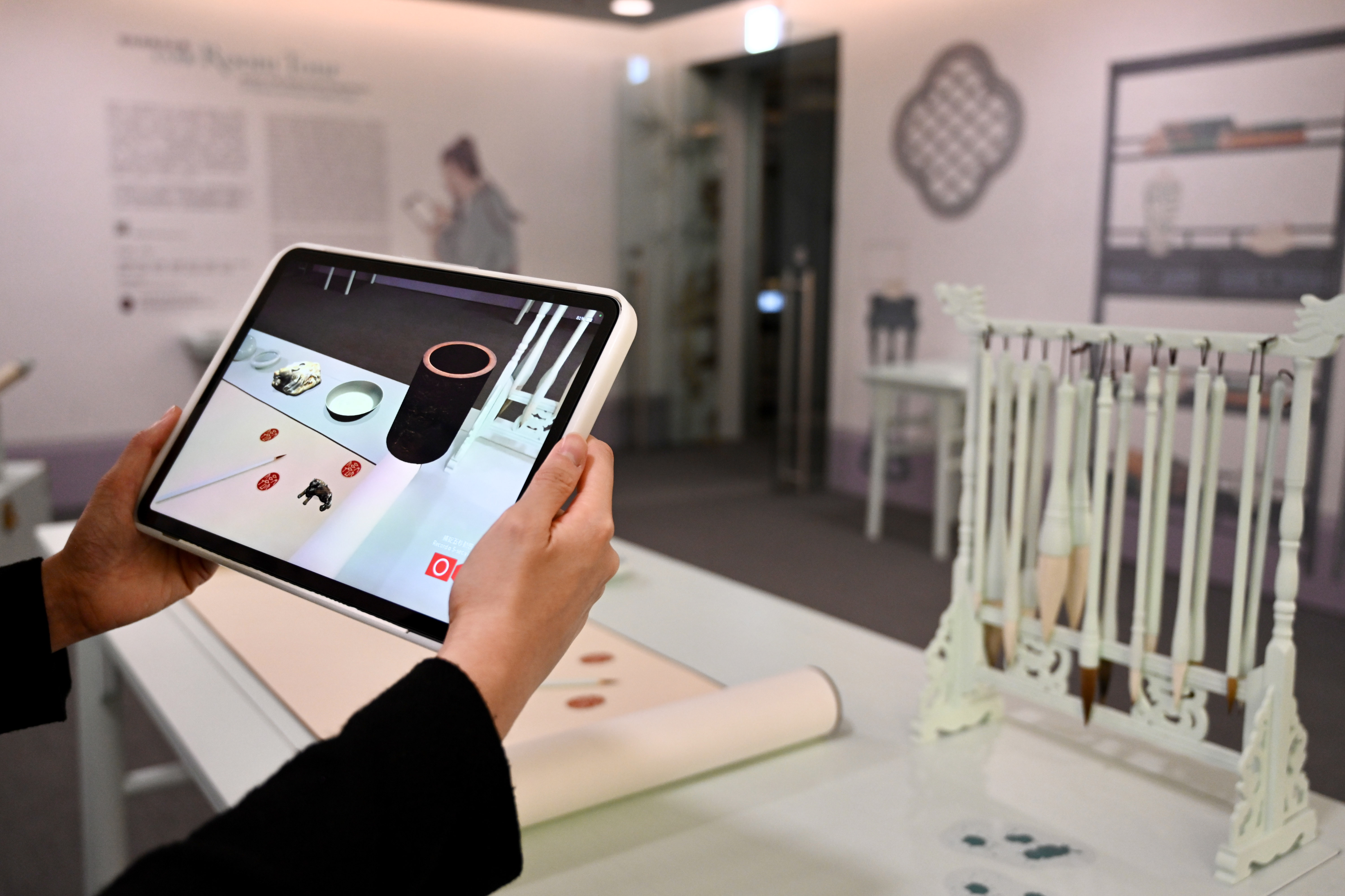 圖為展覽重塑古代文人書齋的場景,運用多媒體裝置和動畫片段,讓參觀者體驗古代的文化風尚。