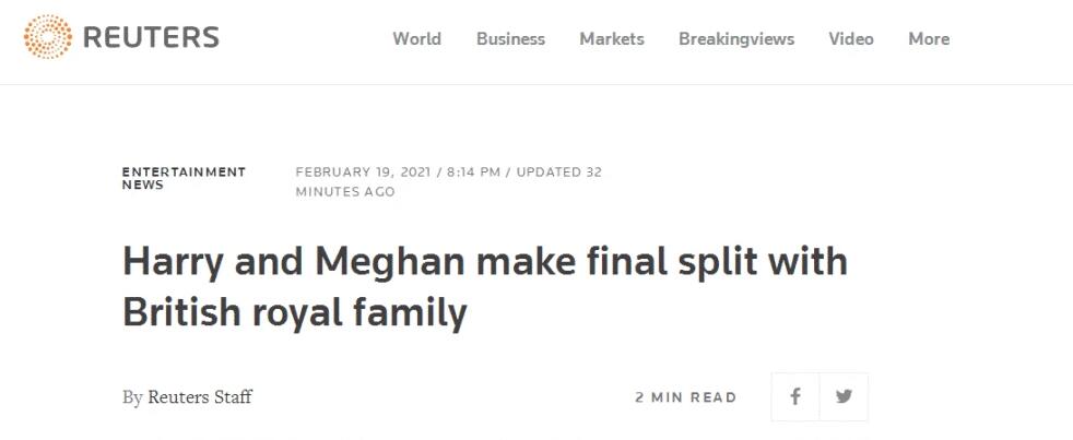 「薩塞克斯公爵和公爵夫人已向女皇陛下確認,他們不會以皇室工作成員的身份回歸。」白金漢宮稱,「雖然大家都為他們的決定感到難過,但(薩塞克斯)公爵和公爵夫人仍然是深受愛戴的家庭成員」。