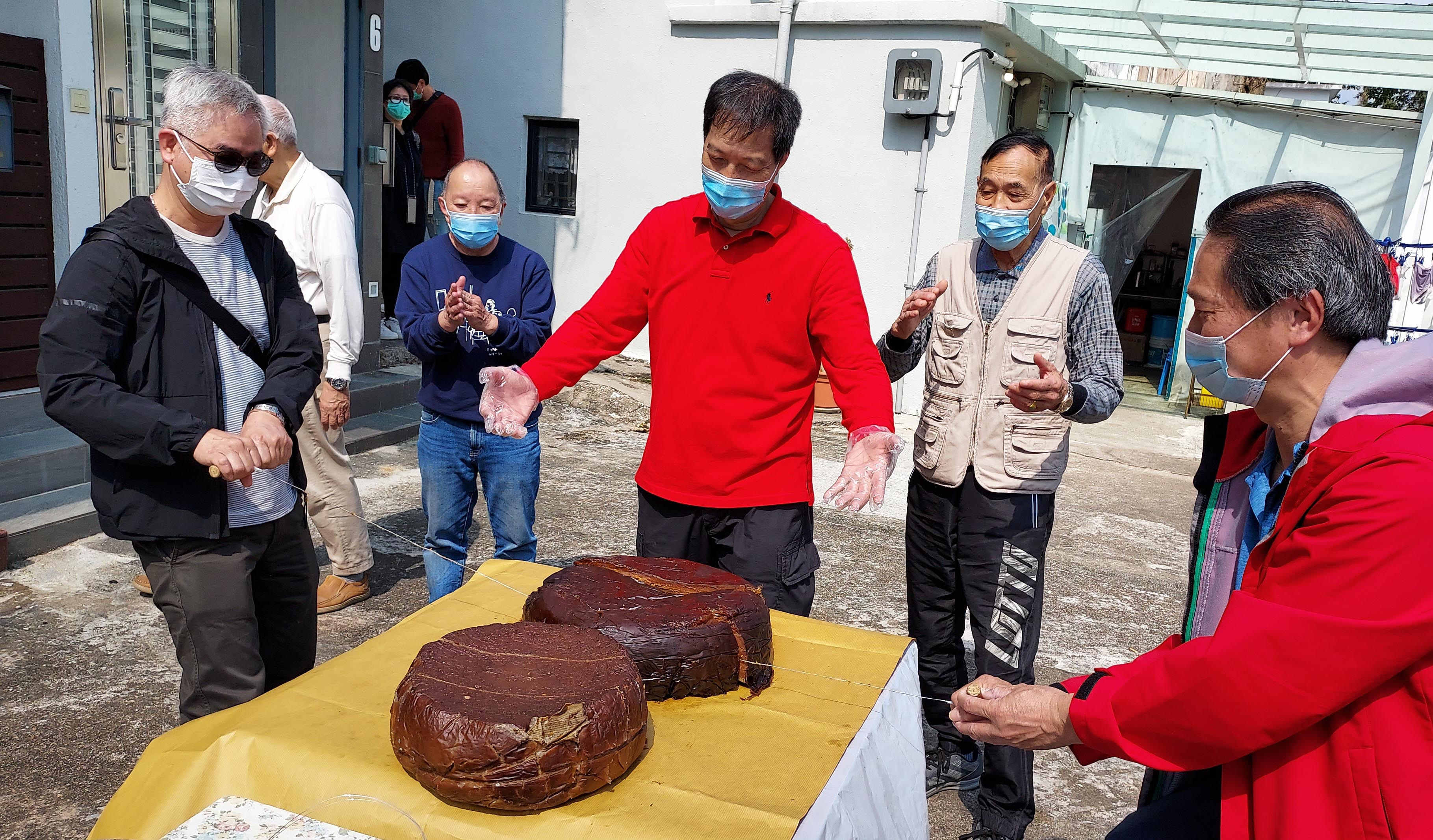不過,這麼好兆頭的傳統客家食物,因疫情限聚民眾,根本不可以拿去天后宮,他一度猶豫是否要繼續,在年廿六最後一刻,他還是決定要做了,這天距離年初三切粿日還有一星期,可有充足時間讓做好的茶粿冷卻變硬。他決定做小一點的,因較容易做,同時在村裏分發,人不多,不會聚眾。