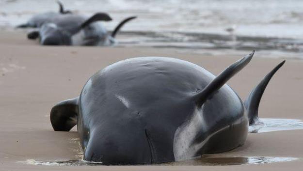 綜合報道,近日,新西蘭南島最北端的海灘發現大批領航鯨(pilot whale)擱淺,盡管拯救人員盡力將這些鯨魚送入大海,但仍然有19頭鯨魚死亡。