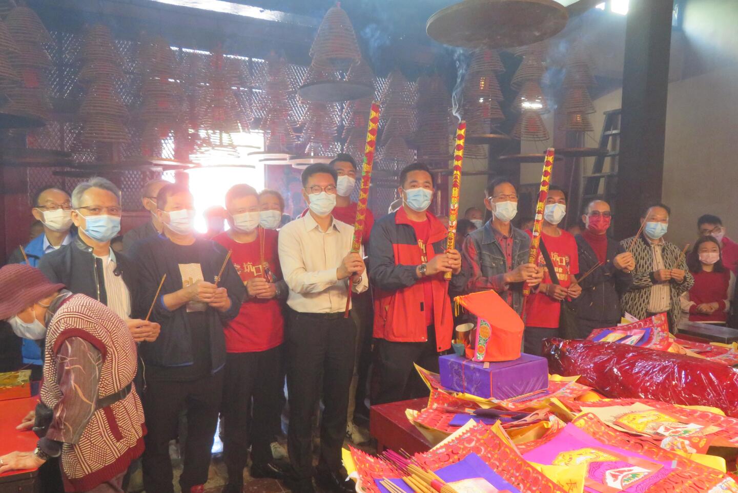 上午10時半,兩隻麒麟在鑼、鼓、鈸引奏下,先後進入坑口天后古廟參拜,其後採青。到11時,劉啟康率領鄉委會成員入廟上香拜神,向天后三鞠躬,祈求天后庇佑,在辛丑年風調雨順、國泰民安。活動進行期間,亦向參與者宣傳防疫信息,派發口罩及搓手液。